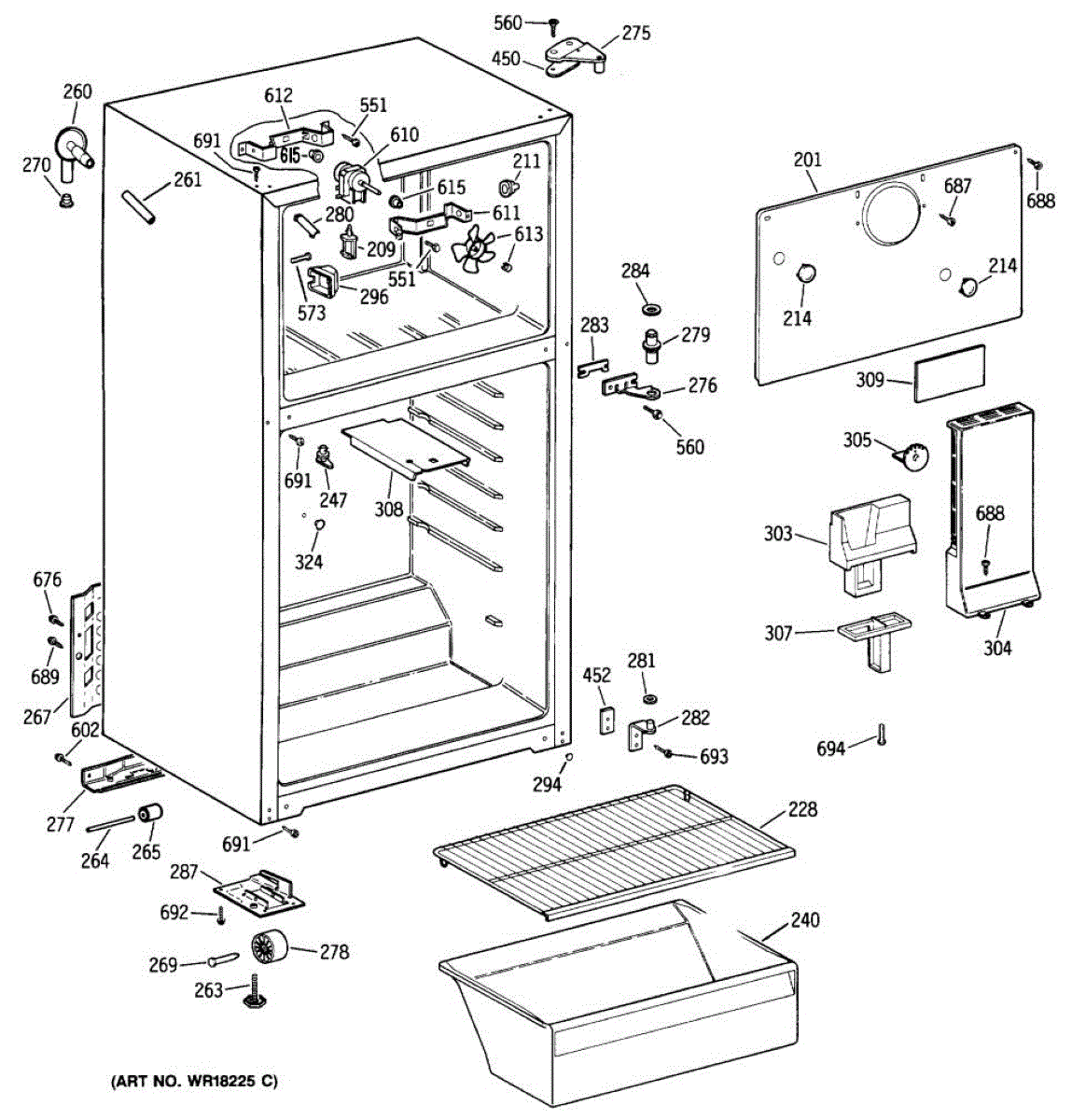 This top hinge and pin assembly secures the refrigerator door to the cabinet and provides a durable pivot point for smooth opening and closing. Replacing a worn hinge restores proper door alignment and sealing. What it does: