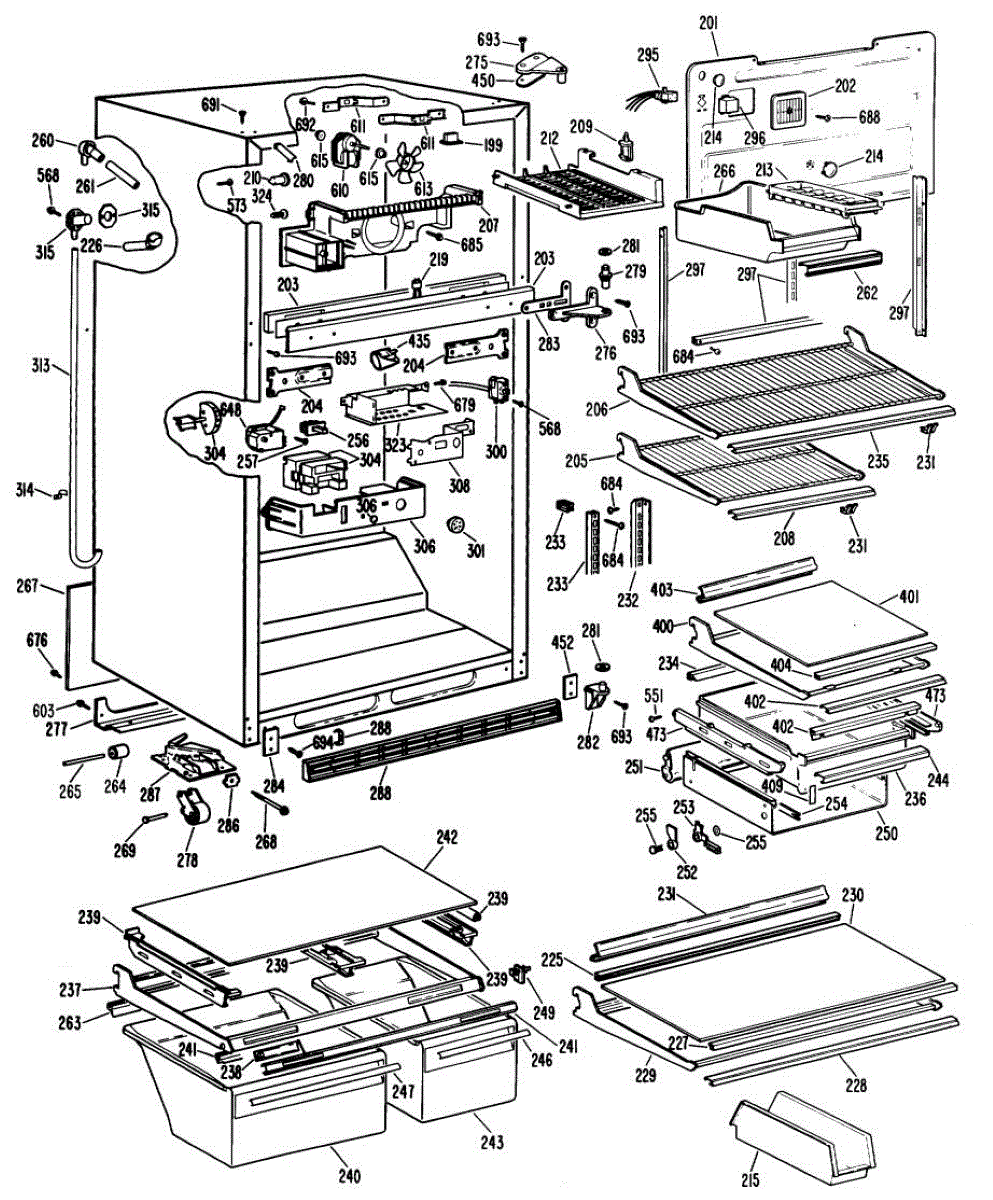 • Remove freezer shelves/ice bin and the rear panel to access the fan assembly