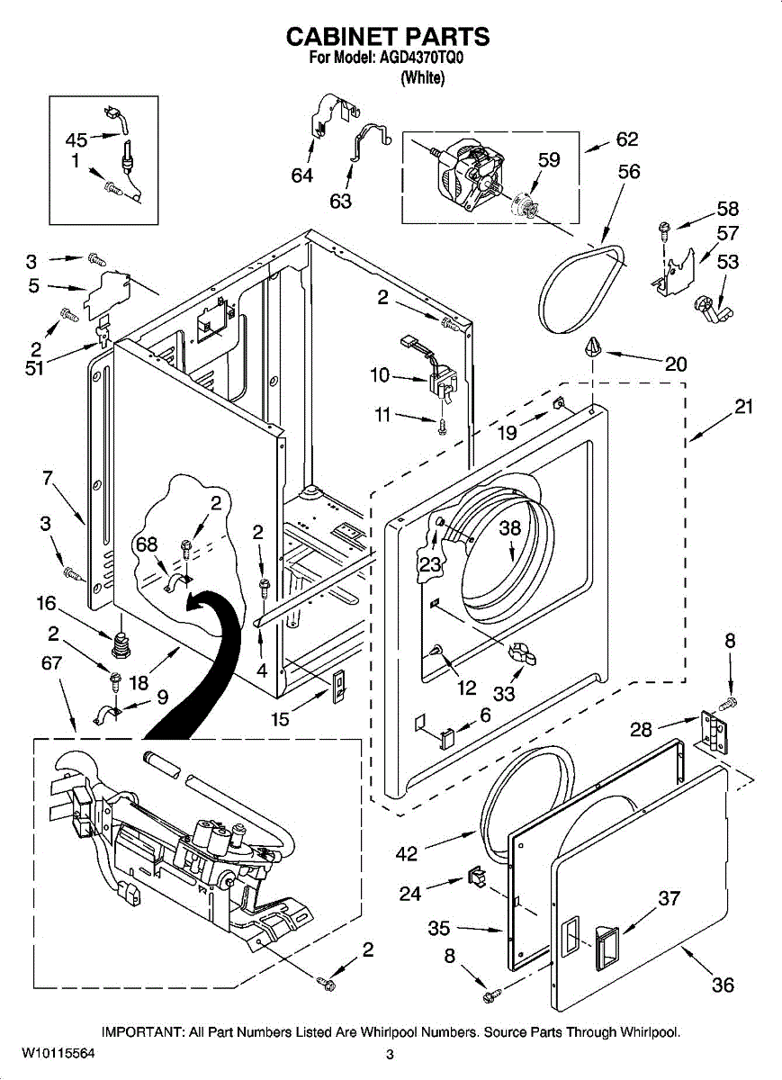 Fits all Whirlpool-made dryers (Whirlpool, Kenmore with prefix 110, Roper, KitchenAid, and Estate). Matching belt 341241 and rear support rollers 349241T. Whirlpool dryer repair manual 677818L.