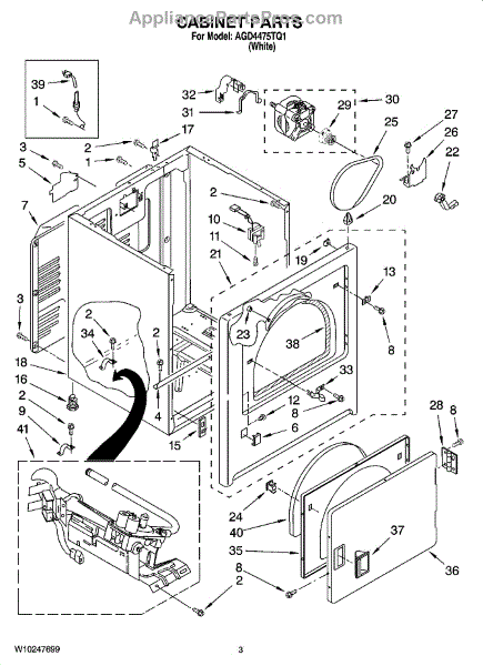 Dryer outer cabinet that houses internal components. Replace if your cabinet is rusted, dented, cracked, or damaged, compromising structural integrity.
