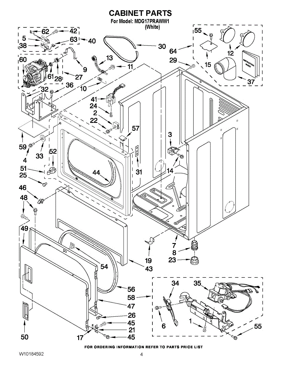 Cabinet housing for dryers. This outer shell encases internal components. Replace if cracked, rusted, dented, or structurally damaged from impact or wear.