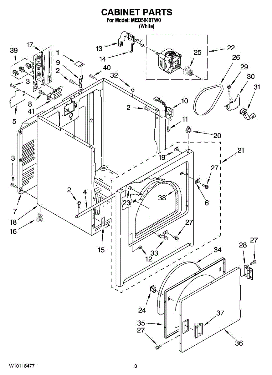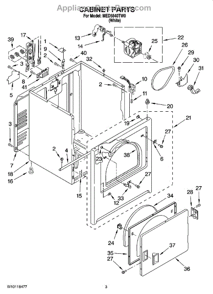 Fits all Whirlpool-made dryers (Whirlpool, Kenmore with prefix 110, Roper, KitchenAid, and Estate). Matching belt 341241 and rear support rollers 349241T. Whirlpool dryer repair manual 677818L.