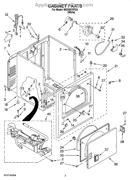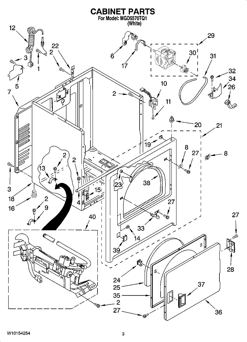Dryer outer cabinet that houses internal components. Replace if your cabinet is rusted, dented, cracked, or damaged, compromising structural integrity.