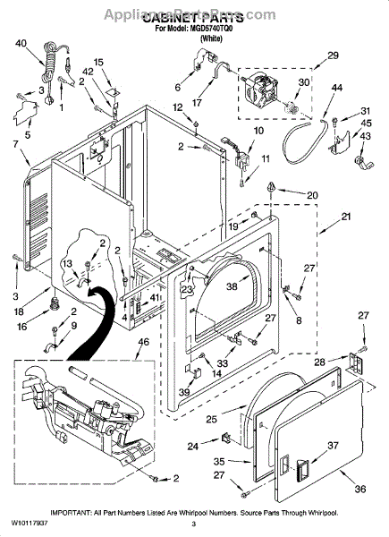 Dryer outer cabinet that houses internal components. Replace if your cabinet is rusted, dented, cracked, or damaged, compromising structural integrity.