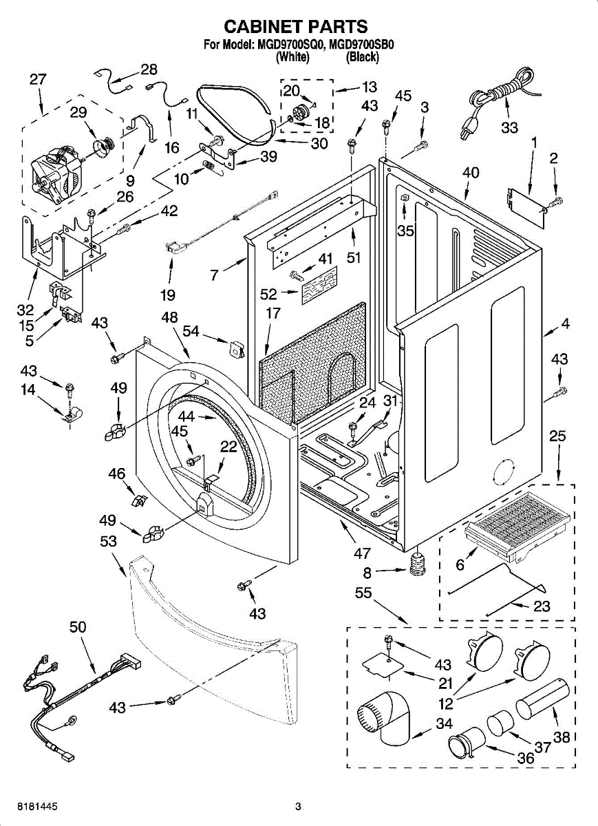 This power cord connects your appliance to household electricity, supplying safe, reliable power to its controls and components. Replace a damaged or overheated cord to restore dependable operation and reduce the risk of shorts.