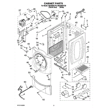 Directs heated air from dryer drum to household vent. Replace if cracked, damaged, or airflow is restricted. Confirms fit for compatible dryer models listed.
