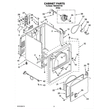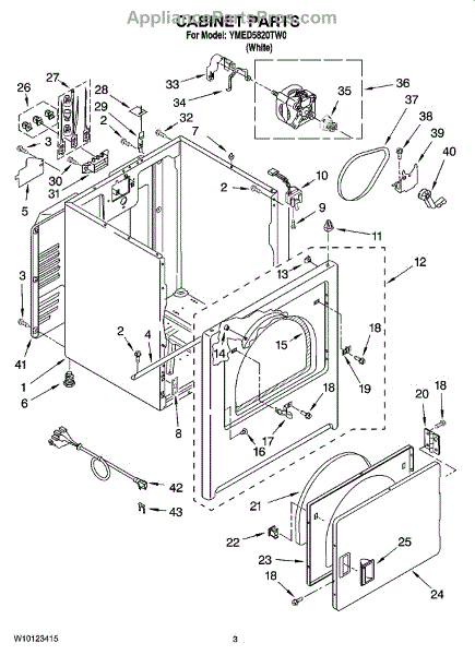 Dryer outer cabinet that houses internal components. Replace if your cabinet is rusted, dented, cracked, or damaged, compromising structural integrity.