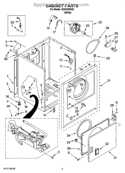 Fits all Whirlpool-made dryers (Whirlpool, Kenmore with prefix 110, Roper, KitchenAid, and Estate). Matching belt 341241 and rear support rollers 349241T. Whirlpool dryer repair manual 677818L.
