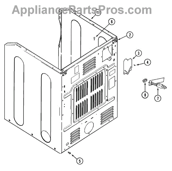 This factory screw secures appliance panels and components, keeping them properly aligned and quiet during operation. Replace a stripped, corroded, or missing fastener to restore a snug fit and dependable performance in the original mounting location. What it does: