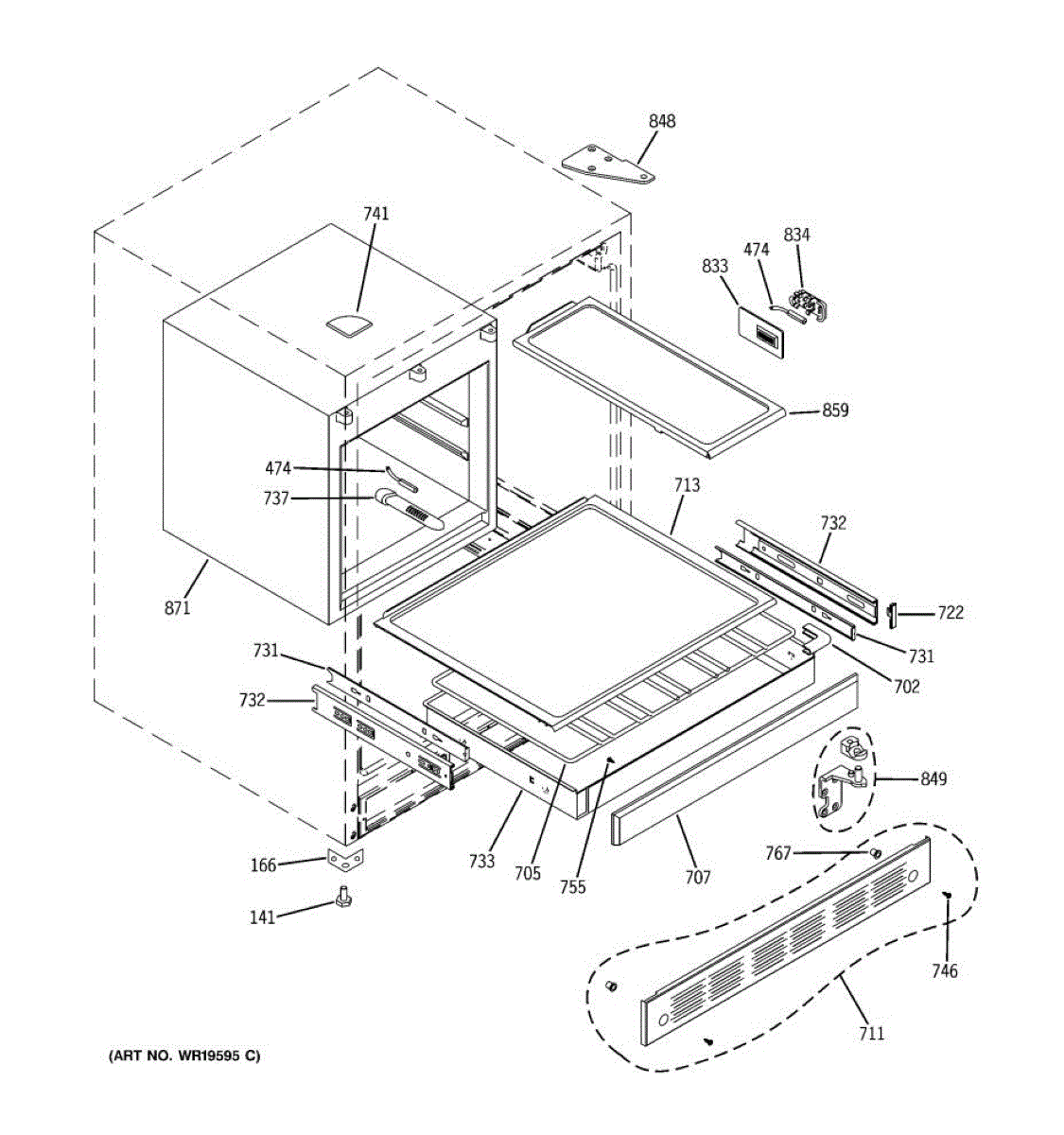 This front frame is the outer trim piece that restores the appliance's appearance and helps hold adjacent panels and components in place. It replaces damaged or worn trim to close gaps and improve fit. What it does: