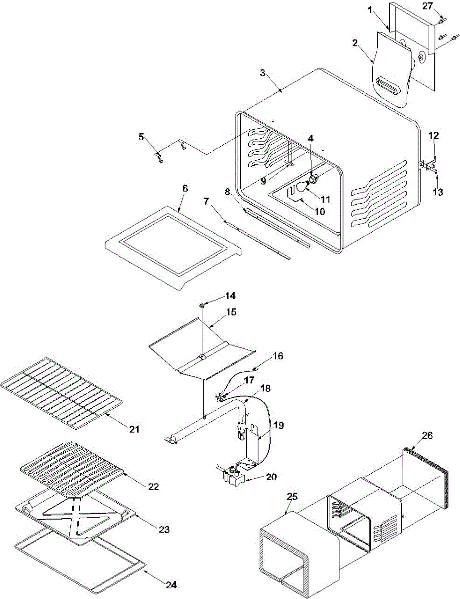 Chrome oven rack measuring approximately 23 inches wide by 16 inches deep. Replaces broken, warped, or missing racks in your oven cavity.