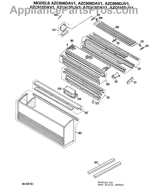 Parts for Ge AZC915DAV1: 02 - Section2 Parts