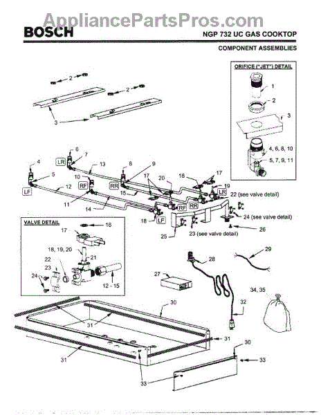 The Jet Holder with Nut is an OEM part for Bosch ranges and cooktops. It holds precisely machined jets that control gas flow from each burner valve.