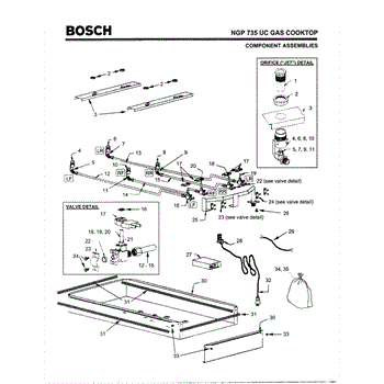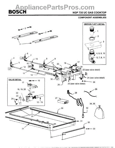 The Jet Holder with Nut is an OEM part for Bosch ranges and cooktops. It holds precisely machined jets that control gas flow from each burner valve.