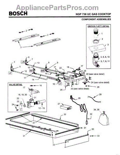The Jet Holder with Nut is an OEM part for Bosch ranges and cooktops. It holds precisely machined jets that control gas flow from each burner valve.