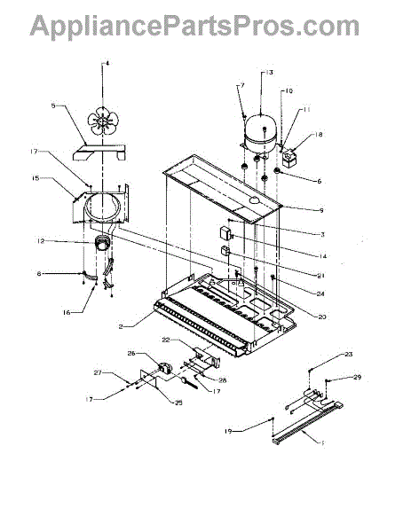 This is the refrigerator's sealed-system compressor. It pressurizes and moves refrigerant through the system to remove heat from the cabinet, restoring consistent cooling performance when the original compressor has failed or lost capacity. What it does and common symptoms: