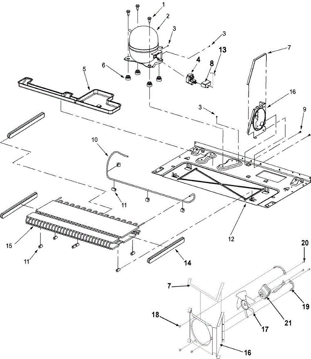 Condensate drain pan collects water under your refrigerator. Replace if cracked, leaking, or damaged to prevent floor water pooling and spillage.