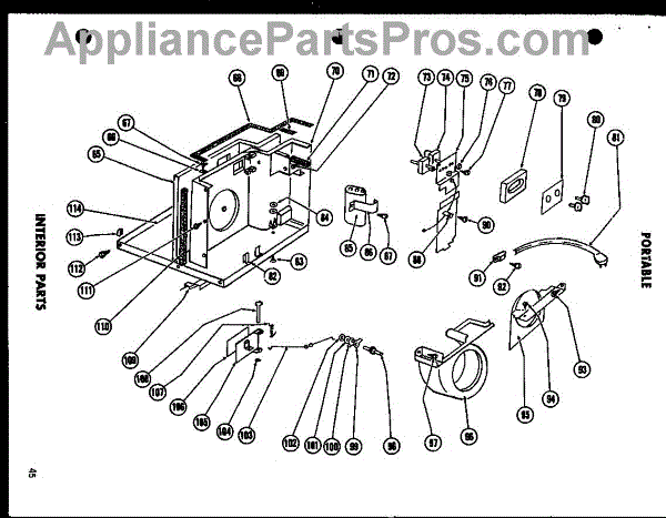 This factory screw secures appliance components to their mounting points. Replace missing, worn, or stripped hardware to restore a tight fit, proper alignment, and quieter operation across the affected assembly.
