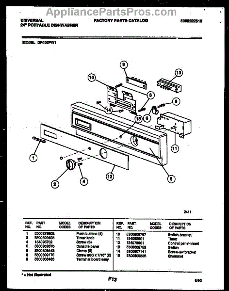 Parts for Frigidaire DP400PW1: 02 - Console And Control Parts