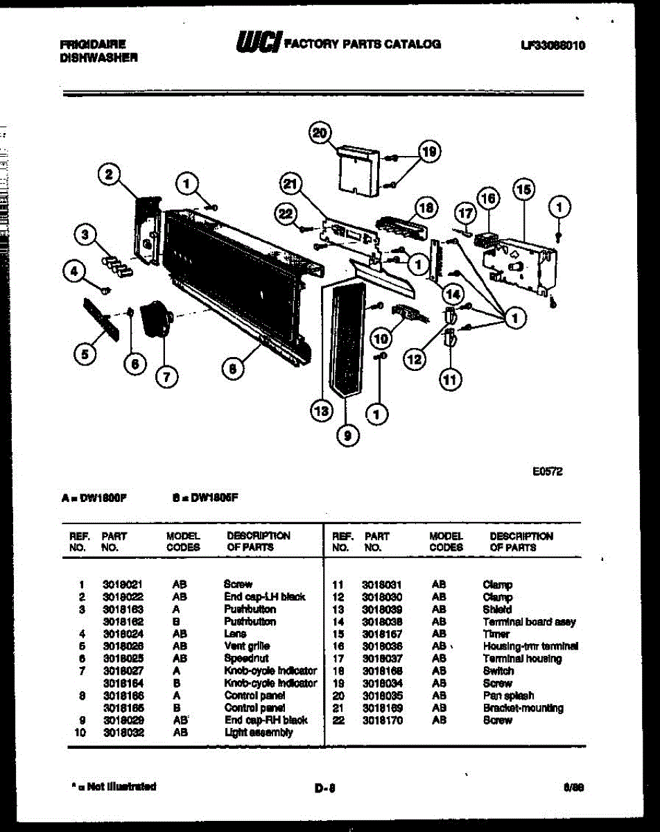 Parts for Frigidaire DW1805FF: 02 - Console And Control Parts