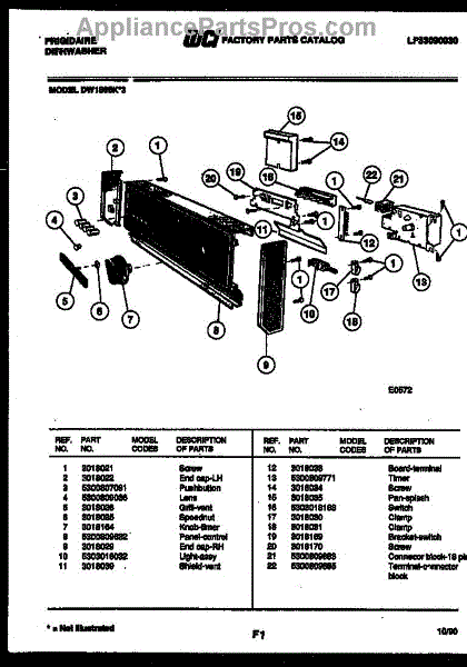 Parts for Frigidaire DW1805KF3: 02 - Console And Control Parts