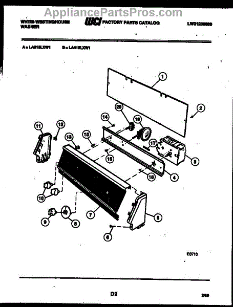 Parts for Frigidaire LA415LXW1: 02 - Console And Control Parts