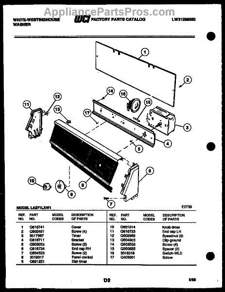 Parts for Frigidaire LA800JXH5: 02 - Console And Control Parts