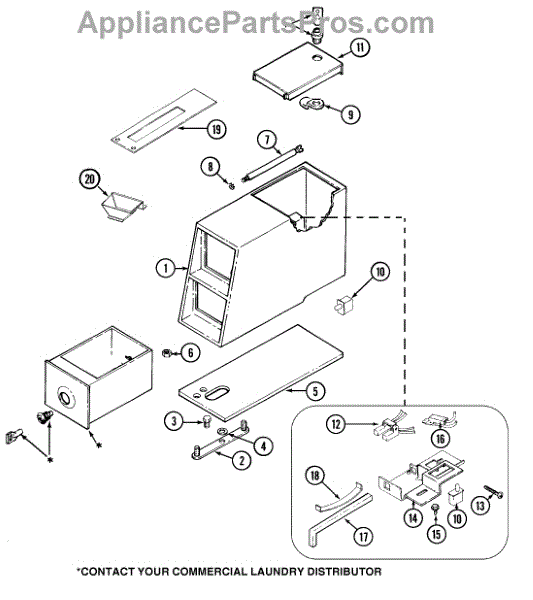 A general-purpose 6-20 screw used to secure panels, brackets and small components on Whirlpool appliances. Replaces stripped or missing fasteners to restore a snug fit and reduce rattling or loose parts. What it does: