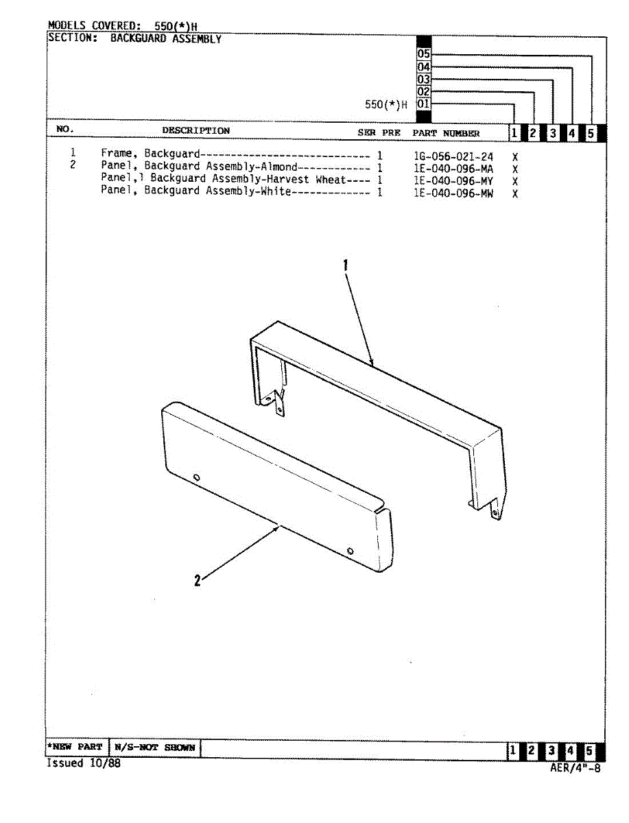 Parts for Admiral 550HH: 02 - Control Panel Parts