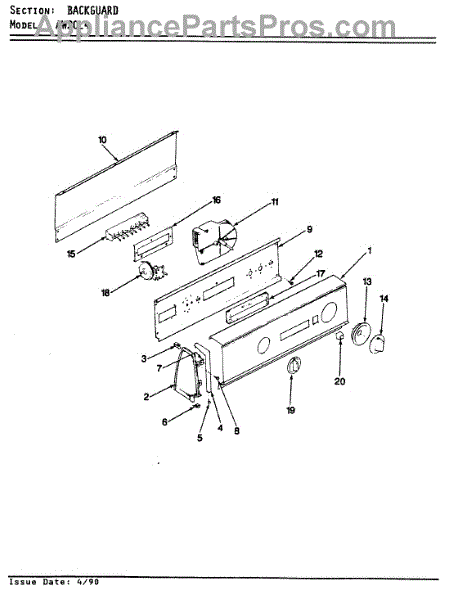 Parts for Admiral AW20L4A: 02 - Control Panel (Rev. E-F) Parts