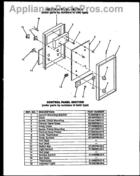 Parts for Amana FCI122: 02 - Control Panel Section Parts