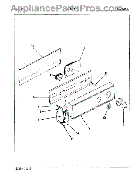 Parts for Crosley CDE20P6W: 02 - Control Panel (Orig. Rev. A-D) Parts