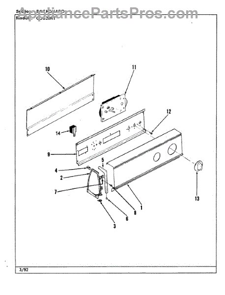 Parts for Crosley CDG20R7W: 02 - Control Panel Parts