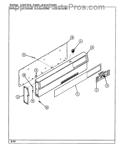 Parts for Crosley CGA6C5WK: 02 - Control Panel Parts