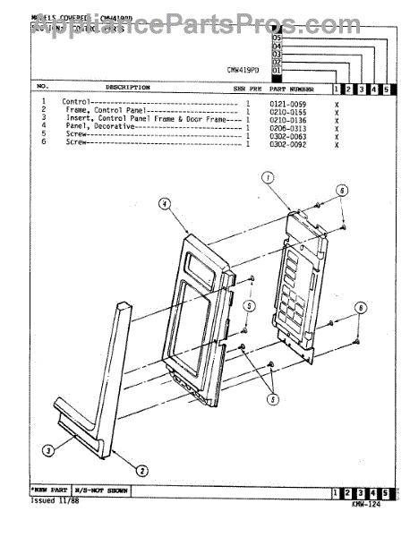 Parts for Crosley CMW419PD: 02 - Control Panel Parts