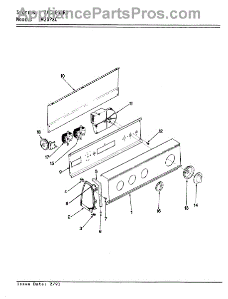 Parts for Crosley CW20P8AC: 02 - Control Panel Parts
