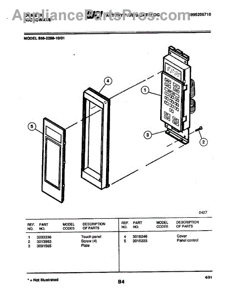 Parts for Frigidaire 856-2288-10/01: 02 - Control Panel Parts