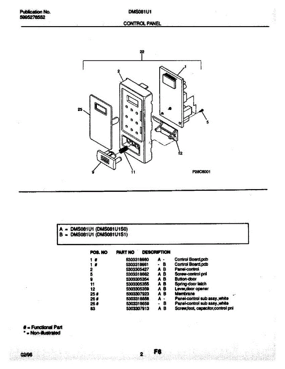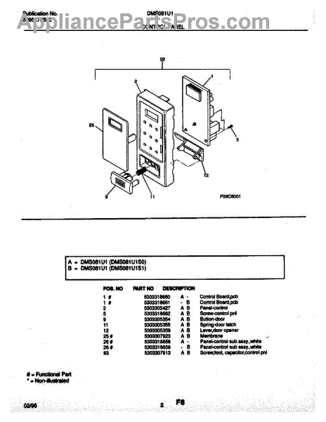 Parts for Frigidaire DMS081U1S0: 02 - Control Panel Parts