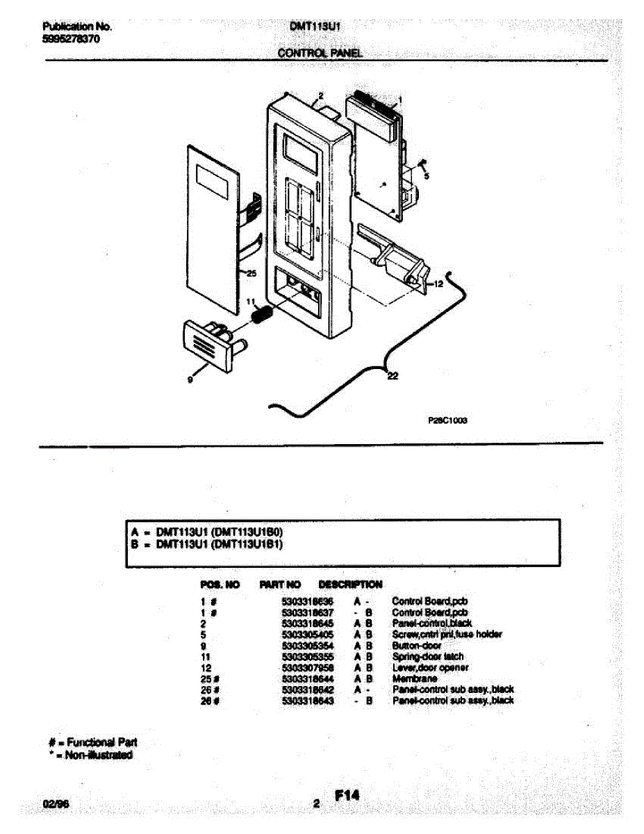 Parts for Frigidaire DMT113U1B1: 02 - Control Panel Parts