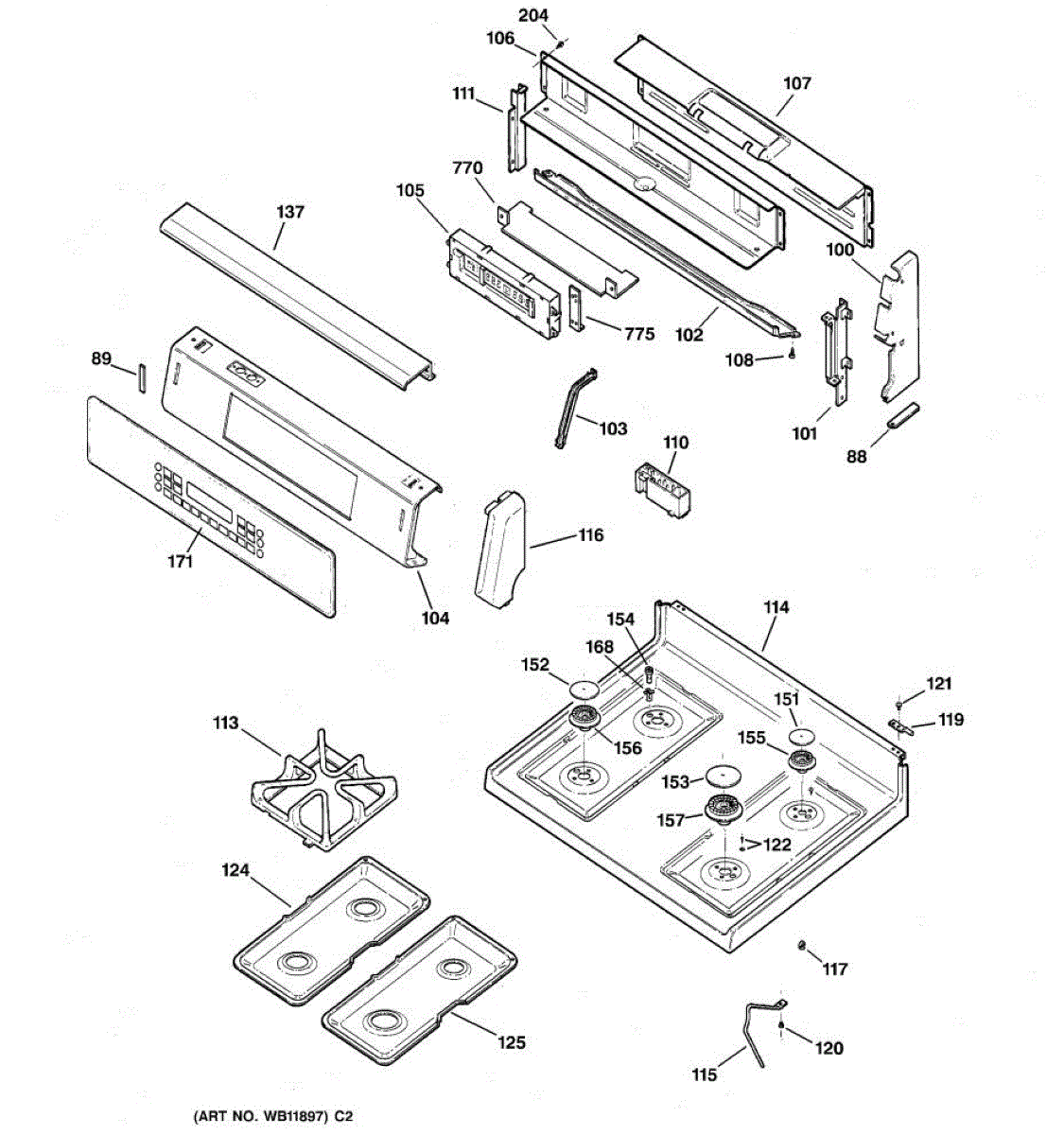 Parts for Ge JGB910SEC1SS: 02 - Control Panel & Cooktop Parts