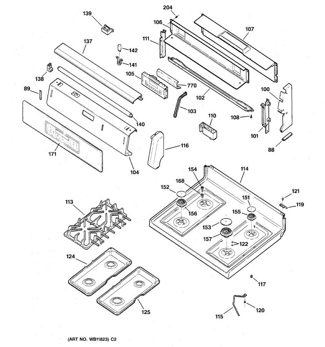 Parts for Ge JGBP86WEB3WW: 02 - Control Panel & Cooktop Parts