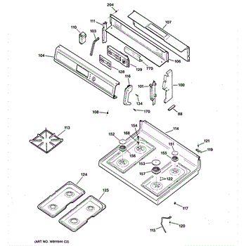 Parts for Ge RGB740BEH1WH: 02 - Control Panel & Cooktop Parts