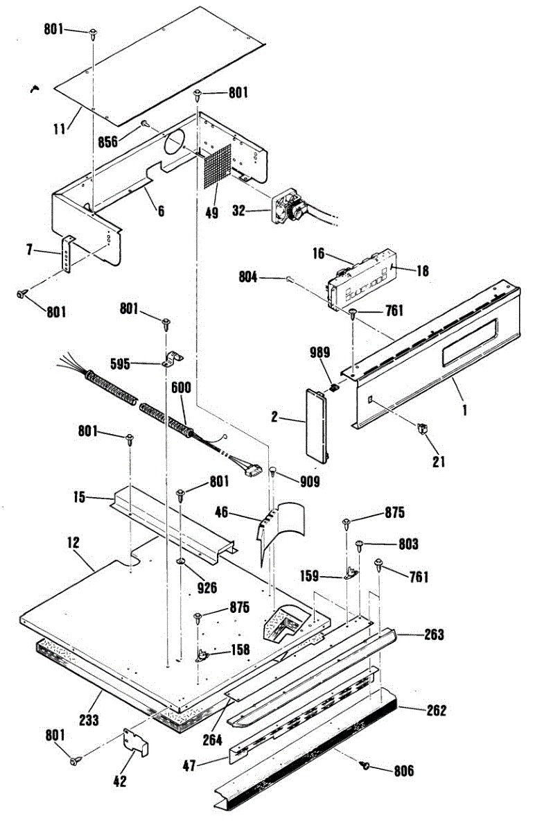 Mounting screw for ranges and ovens. Secures panels, brackets, or internal components. Replace if stripped, missing, or damaged during repair work.