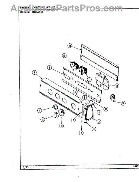 Parts for Hoover HWA2606A: 02 - Control Panel Parts