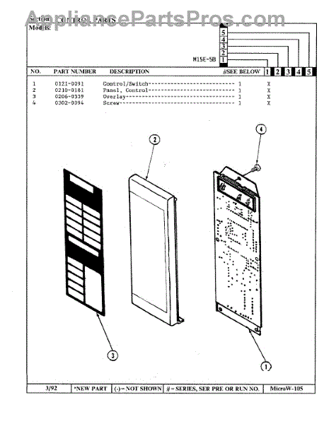 Parts for Magic Chef M15E-5B: 02 - Control Panel Parts