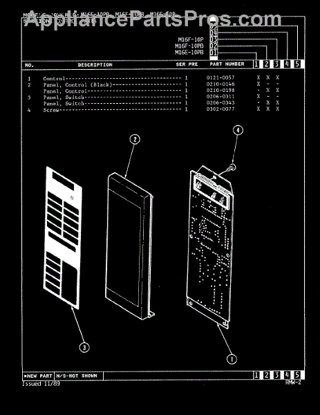 Parts for Magic Chef M16F-10PB: 02 - Control Panel (M16e-10Pb, M16f-10P &Pb) Parts
