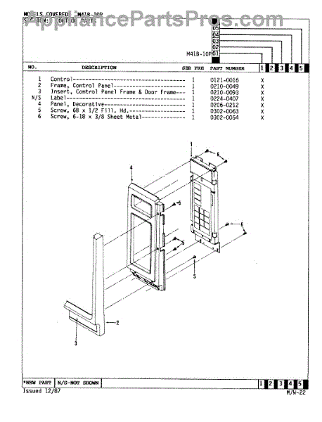 Parts for Magic Chef M41B-10P: 02 - Control Panel Parts
