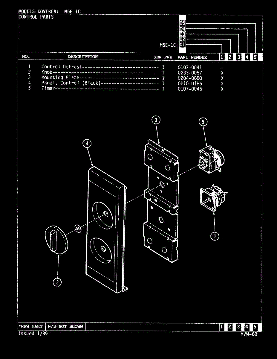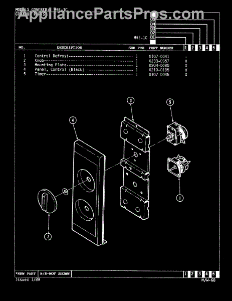 Parts for Magic Chef M5E-1C: 02 - Control Panel Parts