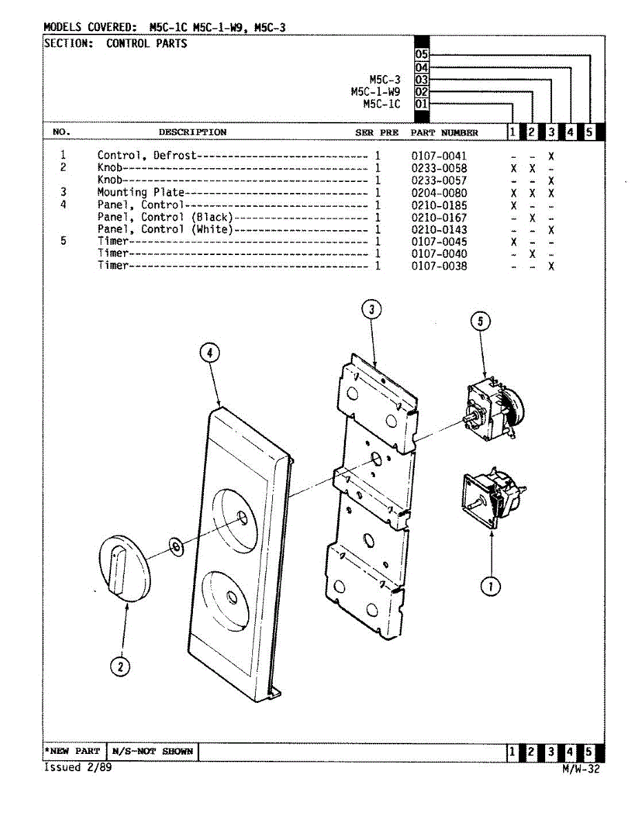 Parts for Magic Chef M5M-3: 02 - Control Panel (M5c-1C,M5c-1-W9,M5c-3) Parts