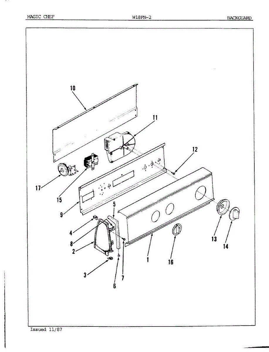 Parts for Magic Chef W18FY2: 02 - Control Panel Parts